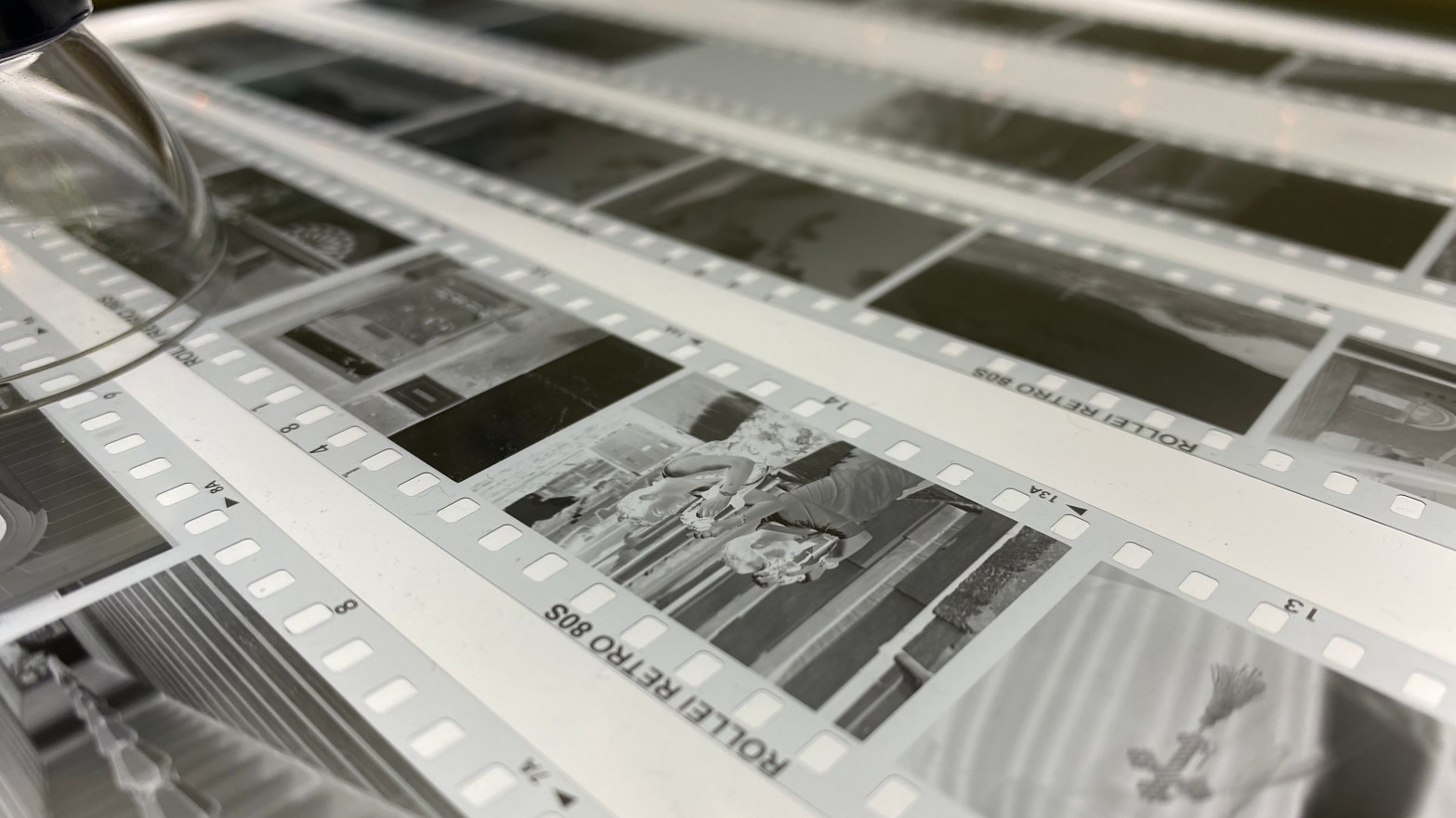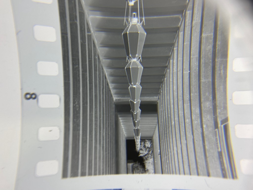L’emulsione della retro 80s è stesa con uno spessore di 100 um su una base di Poliestere, molto resistente, trasparente ma occhio a caricare la pellicola non alla luce diretta del sole…altrimenti rischiate lo scherzetto che è capitato a me (fesso). Infatti la base di poliestere conduce la luce, tipo fibra ottica per intenderci, e potreste rischiare di avere i primi rulli velati o le perforazioni delle pellicole come nell’immagine successiva.